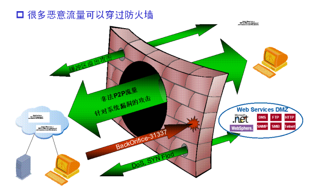 各种蠕虫、病毒、应用层攻击技术和 EMAIL、移动代码结合,形成复合攻击手段,使威胁更加危险和难以抵御。这些复合威胁直接攻击企业核心服务器和应用,给企业带来了重大损失;对网络基础设施进行DDoS攻击,造成基础设施的瘫痪;更有甚者,像电驴、BT等P2P应用和MSN、QQ等即时通信软件的普及,企业宝贵带宽资源被业务无关流量浪费,形成巨大的性能威胁。这些威胁大部分都能够穿透防火墙,防火墙基于TCP/IP 3层和4层的访问控制对这些问题无能为力。 安全形势三:主机和应用层的安全抵御必须和网络紧密结合 目前,越来越多的病毒和蠕虫是基于网络来传播的,有了网络这个介质,可以威胁传播速度很快,以SQL Slammer为例,10分钟内,SQL Slammer感染了全球90%的有漏洞的计算机。如果网络对于这些威胁不能识别,不能在其传播扩散的通路上进行阻截,纯粹依靠人工手动的打补丁、升级防病毒软件和在网络上设置ACL,根本无法抑制这些蠕虫病毒的大规模泛滥。 在这种充满挑战的环境下,IT部门急需能够保护应用系统、网络基础设施和性能的设备,使之能够帮助IT部门实现这些关键任务的解决方案:主动式入侵防御系统,即Intrusion Prevention System – IPS。